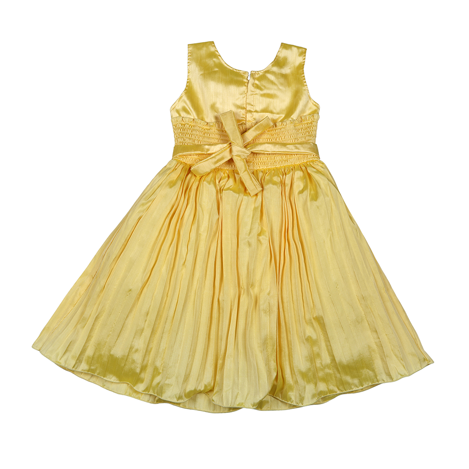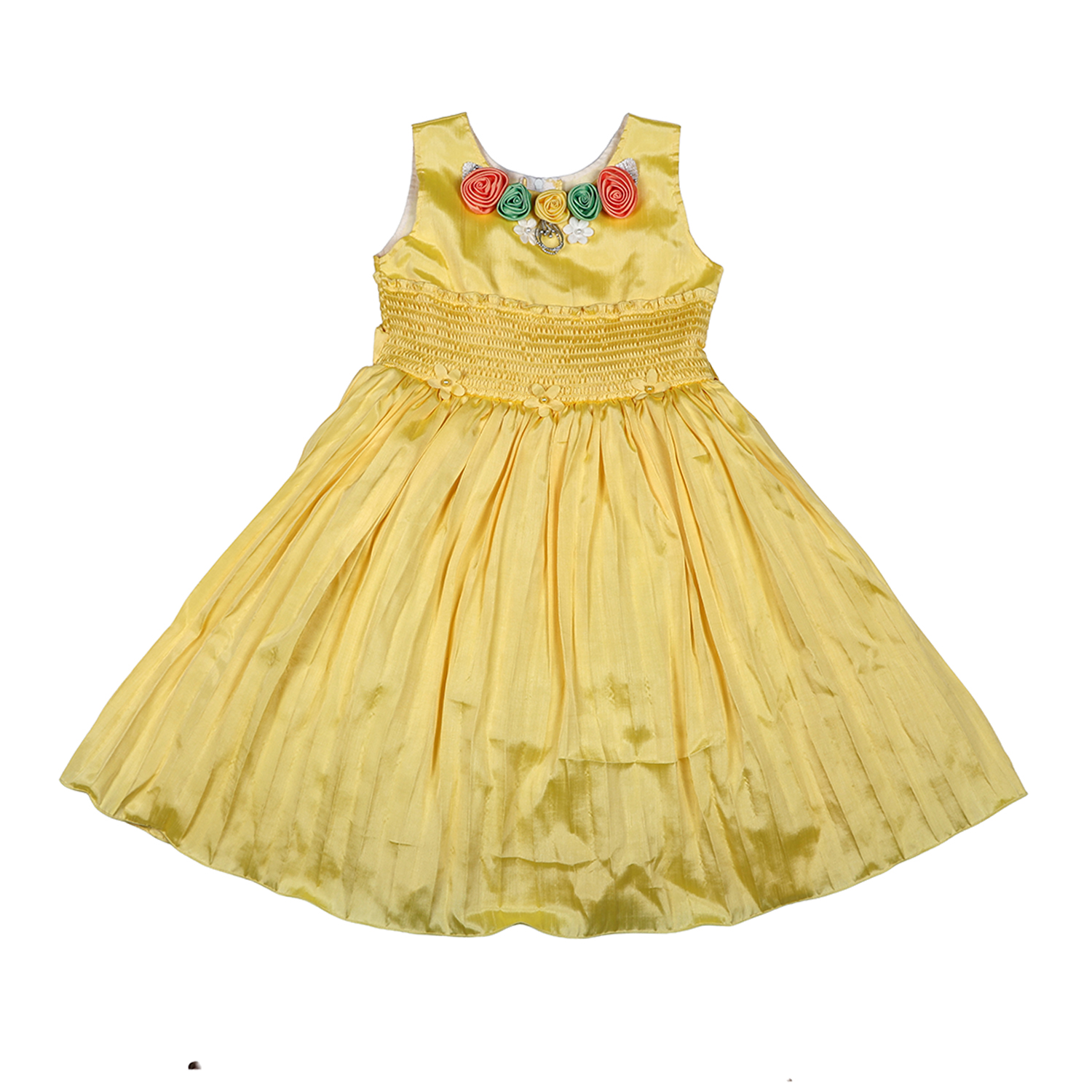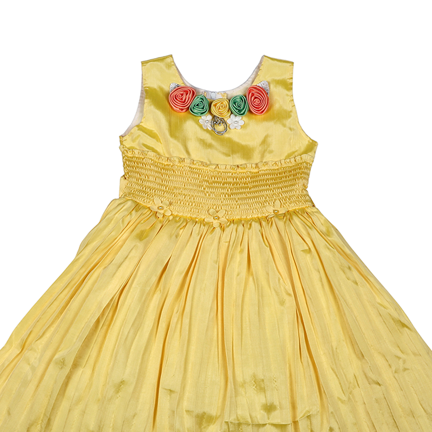 Make your princess shine with the Golden Grace Party Frock. This beautiful yellow dress features a delicate flower detail at the center, adding a touch of sophistication and sweetness. Crafted from soft, high-quality fabric, it ensures all-day comfort while maintaining a luxurious look. The flared design and bright golden hue make it perfect for parties, birthdays, and festive occasions. Pair it with matching shoes and a cute hairband to complete her stunning party look.
