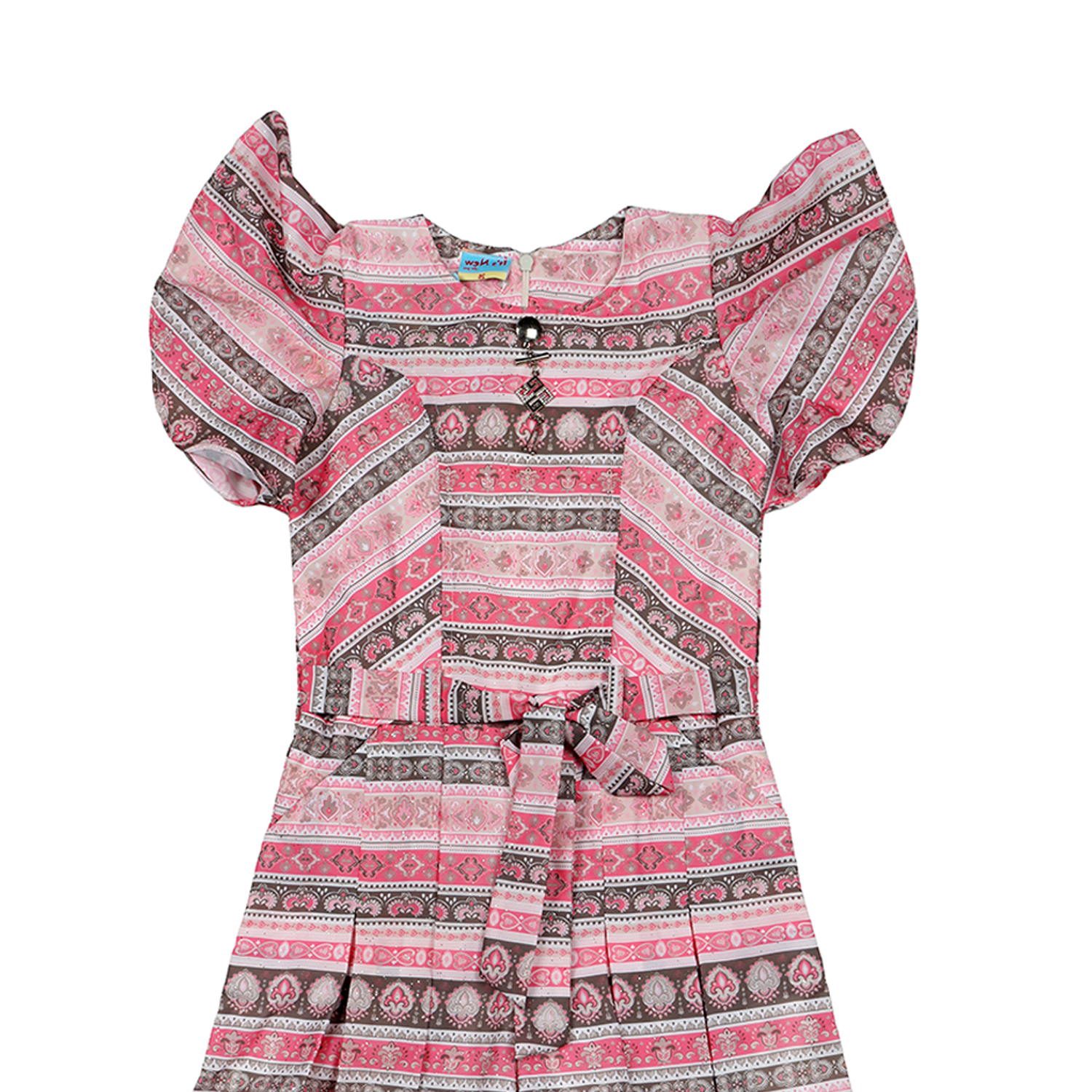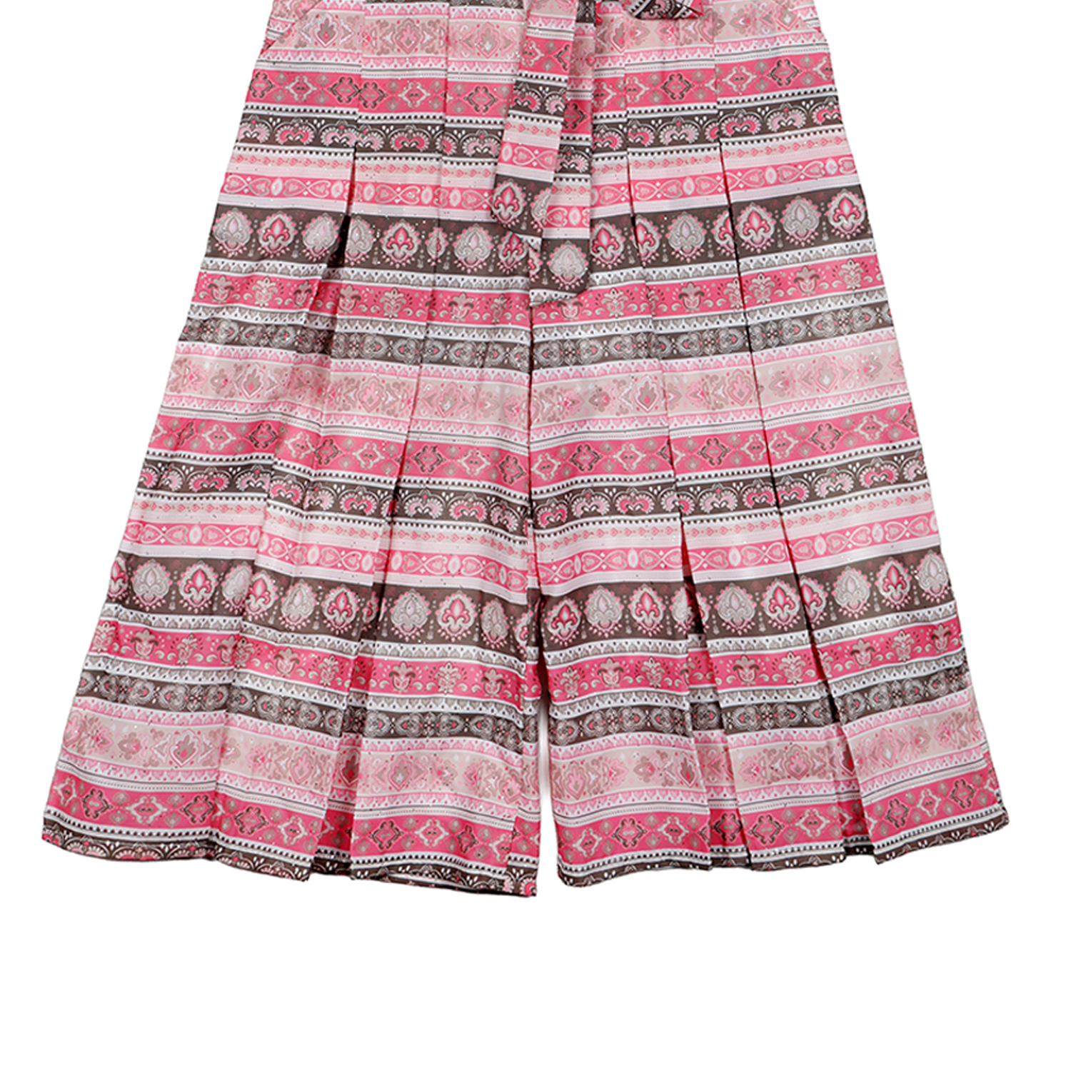 Bring effortless charm to your little girl’s wardrobe with the Pink Bliss Printed Jumpsuit. Designed in a beautiful pink shade with intricate prints, this jumpsuit features cute puff sleeves, a belted waist, and elegant pleats for a graceful look. Crafted from soft, breathable fabric, it ensures all-day comfort while keeping her stylish. Perfect for parties, outings, or festive occasions, this jumpsuit is a must-have for your little fashionista.