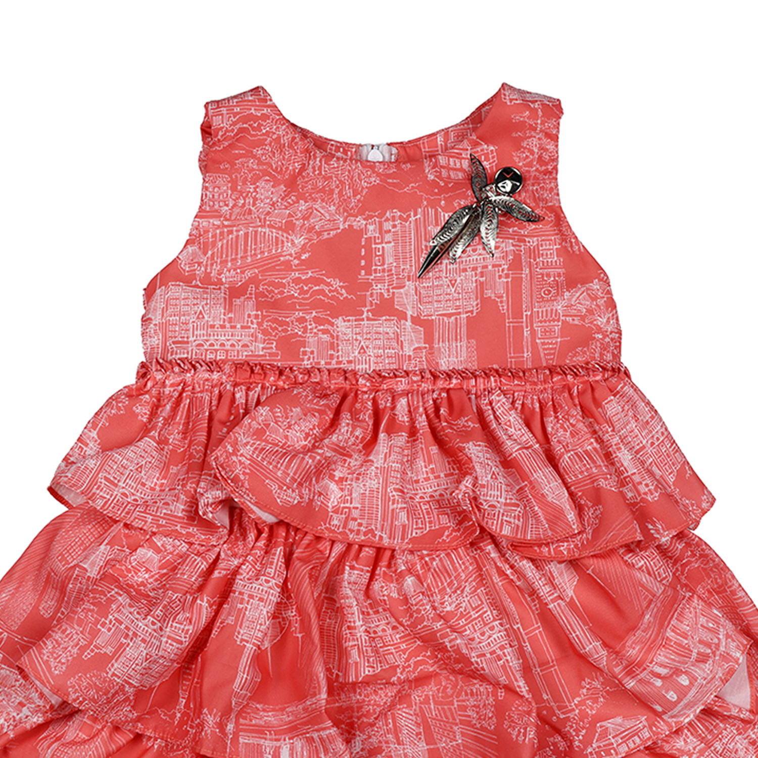 Let your little one shine with the Rose Cascade Party Frock. Designed in a charming coral-red hue, this frock features beautiful layered ruffles and a delicate brooch accent that adds a touch of sparkle. Made from soft, breathable fabric, it ensures comfort while keeping her stylish all day long. Ideal for parties, birthdays, and festive occasions, this frock combines grace, comfort, and a touch of glamour — a perfect choice for your princess!